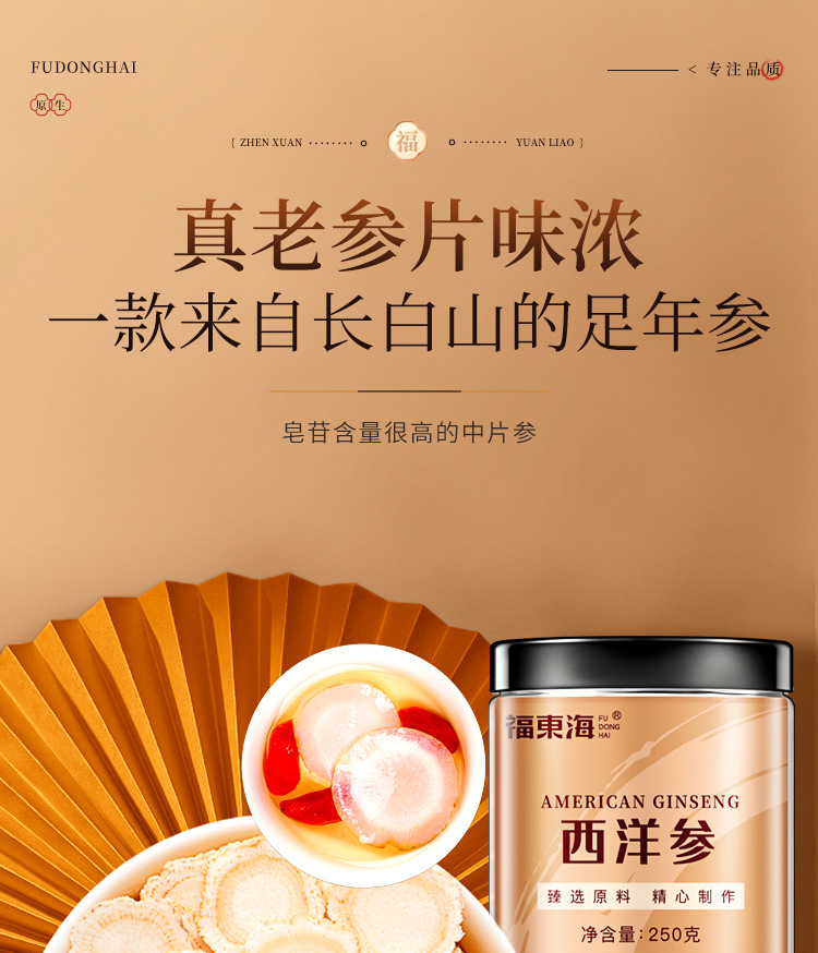福东海西洋参250g西洋参切片含片正品软支即食西洋参茶滋养品泡水